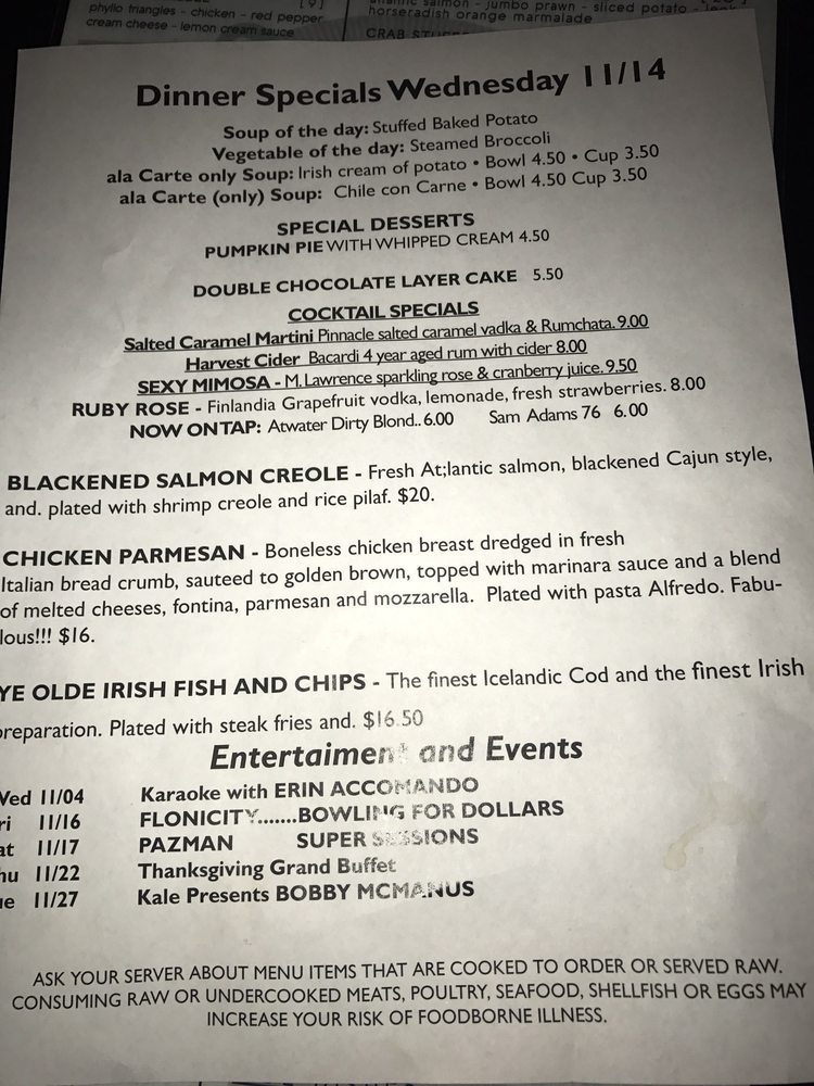 The menu features beloved classics like Shepherd’s Pie and Fish & Chips, artfully paired with modern offerings such as Shrimp Scampi and Lobster Tacos—offering something for every palate. Guests rave about the grilled Rueben, expertly made with Wigley's corned beef, while others indulge in house-made dessert delights like bread pudding.